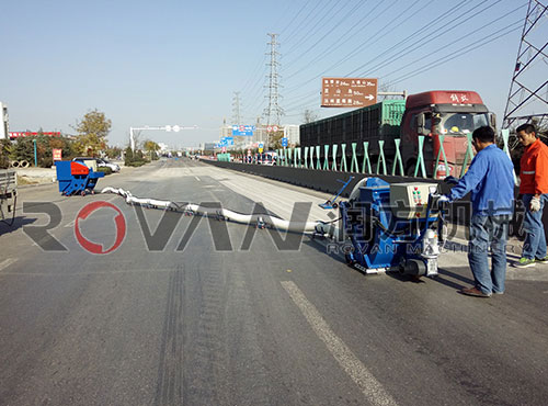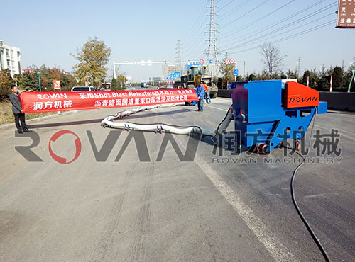 路面抛丸机在青岛董家口港附属公路施工
